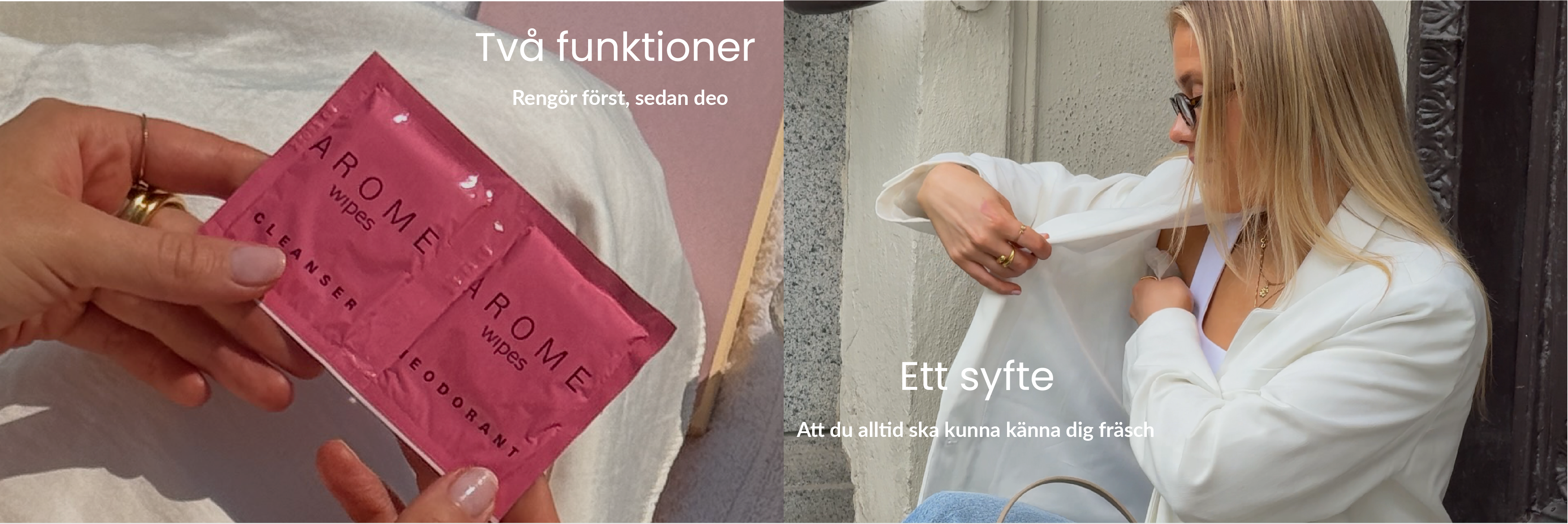 AROME är perfekt när du snabbt behöver fräscha upp dig på språng. Använd CLEANSER för att varsamt avlägsna svett, följt av DEODORANT för en fräsch och långvarig doft. Ha dem i väskan, fickan eller hemma - en uppfräschning är bara några svepningar bort.